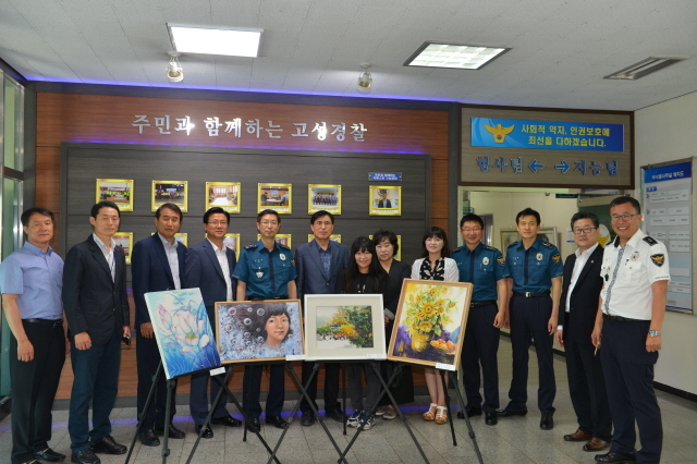 경남 고성경찰서는 14일부터 28일까지 경찰서 로비 및 복도에 고성미협 (회장 허종철) 회원 10명의 작품 30점을 전시하고 있다.