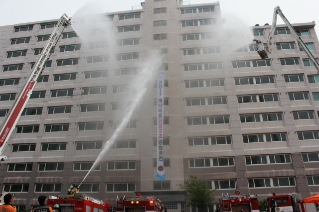 사천소방서 사천시 용강동 소재 휴먼시아 아파트에서 2017년도 재난대비 긴급구조 종합훈련을 실시했다고 25일 밝혔다.