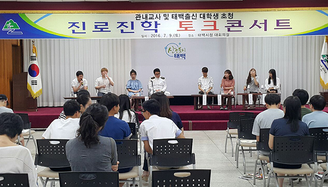 강원 태백시가 내달 8일 오후 2시 태백시청 대회의실에서 김도형 대입지원관 및 관내고교 출신 대학생 8명을 초청해 진로진학 토크콘서트를 연다고 밝혔다.