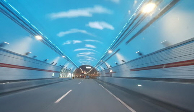 대부분의 터널들이 주는 회색 콘크리트의 천정이나 벽에서 벗어나 세계 11위의 명성답게 터널 천정은 하늘을 닮은 하늘색을 한 터널 천정을 중간에 만들어 놓았다.