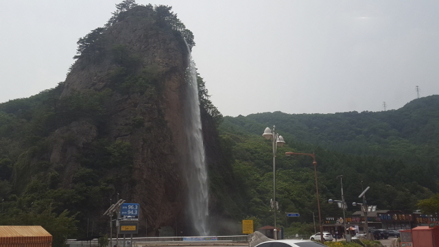 황태덕장 마을로 들어가는 휴게소 앞에는 거대한 폭포수가 쏟아지고 있었다.