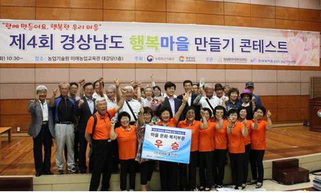 경남도는 지난 4일 경남도농기원 미래농업교육관 대강당(1층)에서 ‘제4회 경남도 행복마을 만들기 콘테스트’를 열고, 거창군 오산마을 등 4곳을 우승 마을로, 양산시를 마을만들기 우수 시로 선정했다고 5일 밝혔다.