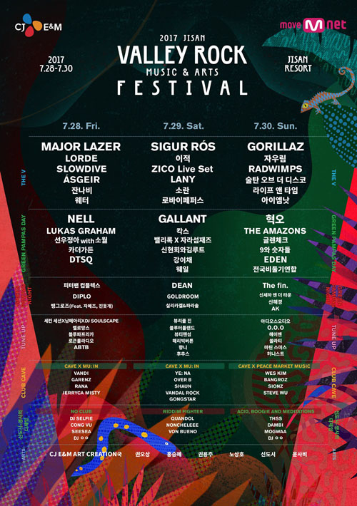 오는 28일부터 30일까지 경기도 이천 지산 리조트에서 열리는 '2017 지산 밸리록 뮤직 앤드 아츠 페스티벌(이하 밸리록)'이 5일 최종 라인업과 타임 테이블을 확정 발표했다.
