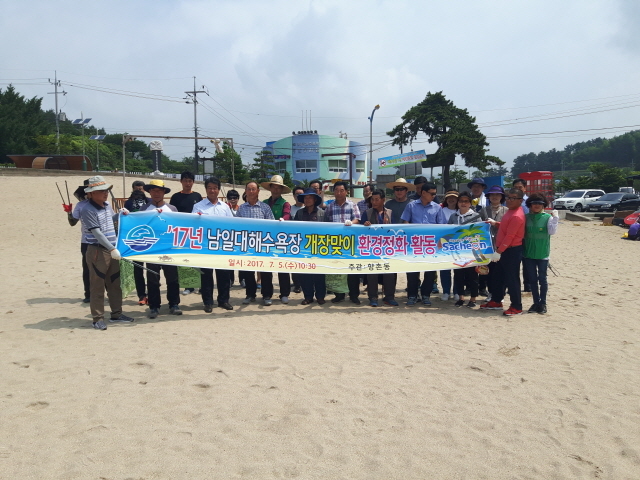 오는 8일 남일대해수욕장 개장을 앞두고 향촌동행정복지센터는 통장협의회를 비롯한 10여개의 자생조직단체와 함께 피서객이 즐거운 마음으로 휴식을 취할 수 있도록 환경정화 활동을 실시했다.