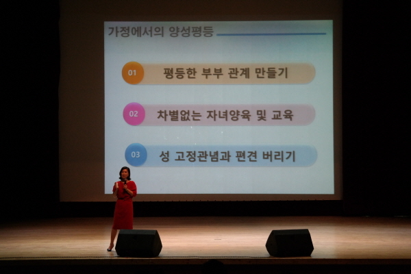 1부 기념식에서 양성평등 유공자에 대한 시상과, 2부에서 양소영 변호사를 초청하여 ‘행복한 가정을 만드는 양성평등’이란 주제로 특강이 진행됐다.