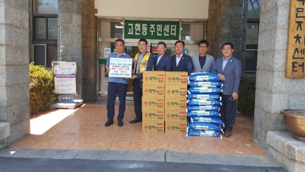국제라이온스클럽 355-C지구 새거제라이온스클럽(회장 곽순수)은 지난 13일 취임식 축하화환을 대신해 기탁 받은 쌀 200㎏과 회장이 준비한 라면 10박스를 어려운 이웃에게 전달해 달라며 고현동 주민센터에 기탁했다.