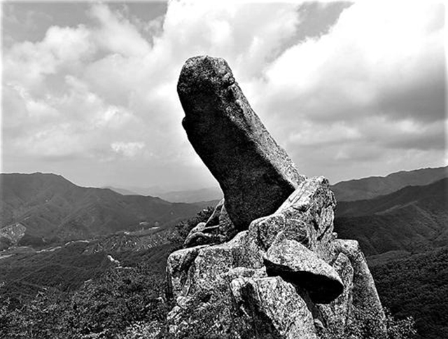 할미봉에 서면 남으로는 깃대봉을 지나 백운산으로 이어진 백두대간이 구절양장 아스라이 이어집니다. 서편으로는 장계의 너른 들녘과 장수경주마목장 그리고 산들의 중첩이 첩첩합니다. 동으로는 월봉산, 금원산을 지나 기백산과 거창의 산하가 자리를 잡고 있고, 북으로는 장수덕유산(서봉)과 남덕유산이 병풍처럼 우뚝하니 펼쳐져 있습니다. 할미봉 옆 우뚝하니 솟은 대포바위는 전설을 간직한 채 오늘도 묵묵히 자리를 지키고 있습니다. 무심한 듯 서있는 늘 푸른 소나무 한 그루는 대포바위의 영원한 친구입니다.