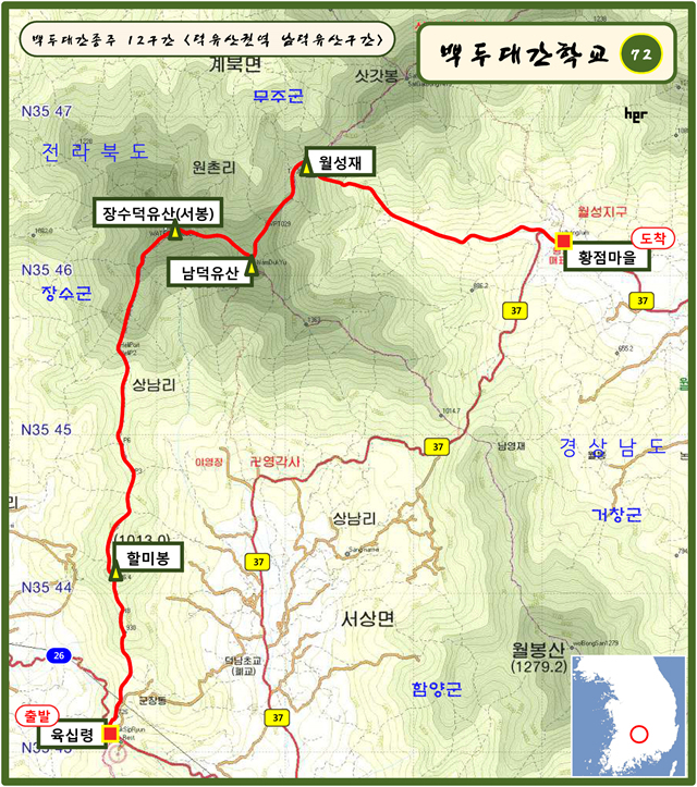 -산행코스 : 육십령-할미봉-장수덕유산(서봉)-남덕유산-월성재-황점마을