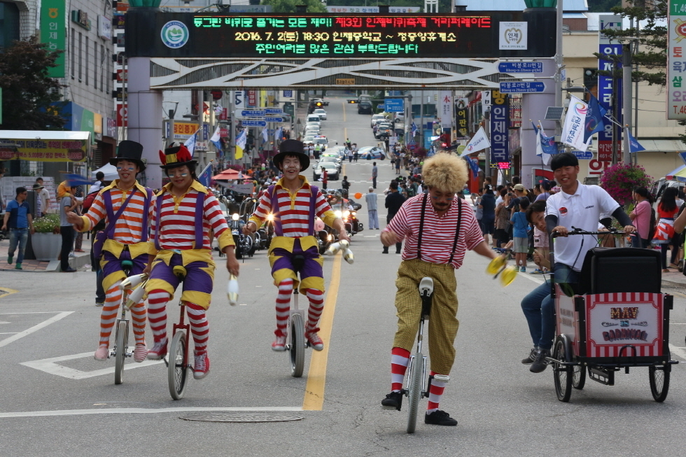 이번 축제는 주행사장인 정중앙휴게소에서부터 인제체육관까지 1.2km 구간이 차 없는 거리로 조성돼 이색자전거, 스윙카, 나인봇, 레저카트 등 이색적인 바퀴체험을 할 수 있다.
