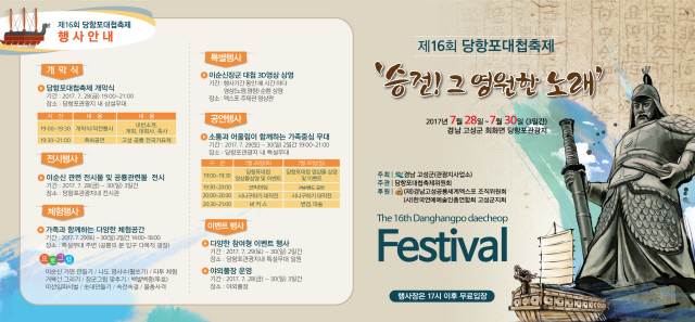 경남 고성군은 28일부터 30일까지 3일간 고성군 당항포관광지 일원에서 충무공 이순신 장군의 당항포대첩을 기념하는 ‘제16회 당항포대첩 축제’가 개최된다.