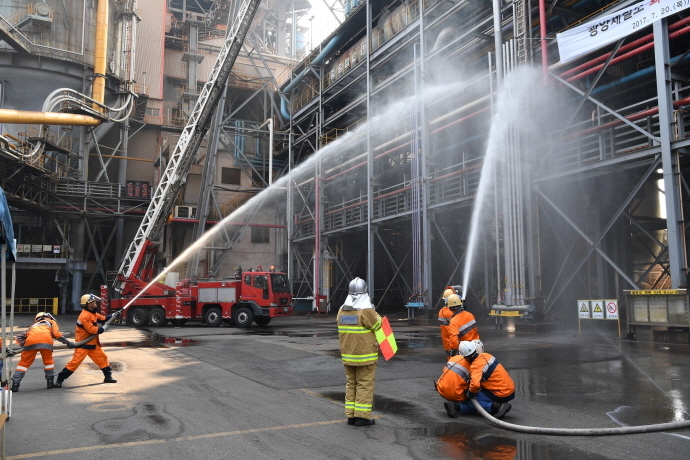 훈련은 화재 발견 시 초기대응과 인명대피, 소방시설을 이용한 초기진압 및 소방부서간 합동 소화훈련, 부상자 구조 및 응급구호, 화학사고 대응 등으로 재난 발생시 직원들이 신속하고 정확하게 대응할 수 있도록 진행됐다.