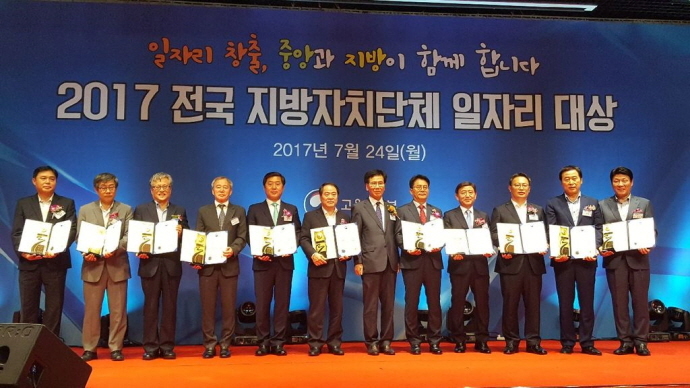 시는 24일 고용노동부 주관으로 열린 ‘2017 전국 지방자치단체 일자리대상’에서 최우수상을 수상하고 시상금 1억 원을 받았다고 밝혔다.