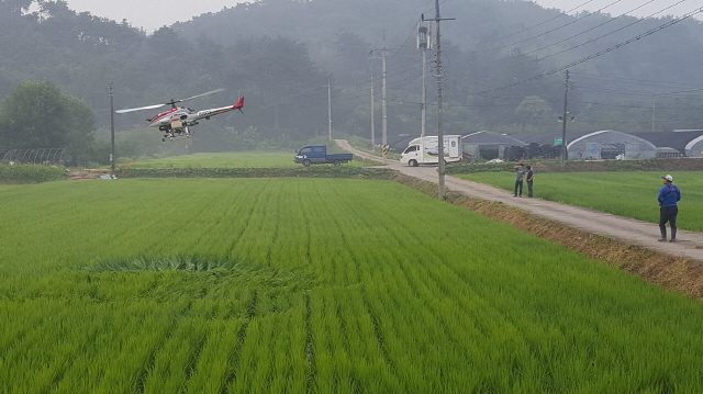 무인헬기 방제는 지상 3~5m 저고도에서 농약을 살포해 약제 침투 및 방제효과가 높은 방법으로써 헬기 1대 당 하루 평균 30~50ha 면적의 방제가 가능하며 무인헬기 10대가 전 마을에 동시에 투입하여 일제 방제가 이루어져 농업인들로부터 큰 호응을 얻고 있다.