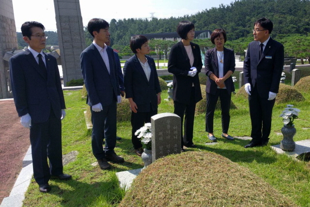 이정미 대표, 추혜선 대변인, 윤소하 의원, 강은미·정혜연·한창민 부대표 등 당 지도부는 이날 오전 5.18 민주 묘역을 참배했다. 이정미 대표는 방명록에 "광주 정신은 정의당의 좌표이자 강령"이라며 "민생, 개혁 정치의 최전선에서 제1야당으로 우뚝 서겠습니다"라고 적었다.