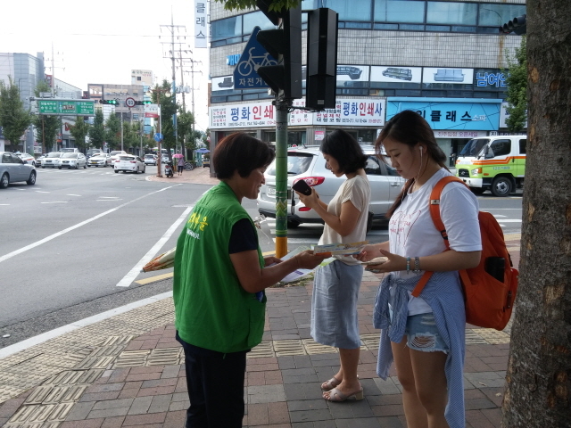 이날 캠페인은 진주시 새마을부녀회, 진주시 국민안전현장관찰단 등 30여 명이 참여한 가운데 ‘횡단보도 아닌 곳에서 무단횡단 하지 맙시다!’라는 슬로건아래 시민들에게 교통안전 홍보물을 배부하고, 현수막을 이용해 보행자 교통안전에 대한 안전문화운동 캠페인을 실시했다.