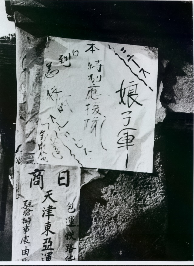 ▲낭자군 도착을 알리는 벽보. 일본인들은 위안부를 '낭자군'으로 불렀다.