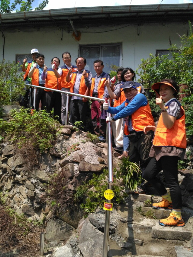 이날 양 회원 22명이 계단난간 손잡이 설치공사를 실시한 수혜자 최씨는 신장장애 2급으로 신장 투석 후 집으로 올라갈 때면 힘이 없어 기어서 올라 다닐 정도로 생활에 불편을 겪고 있었다.