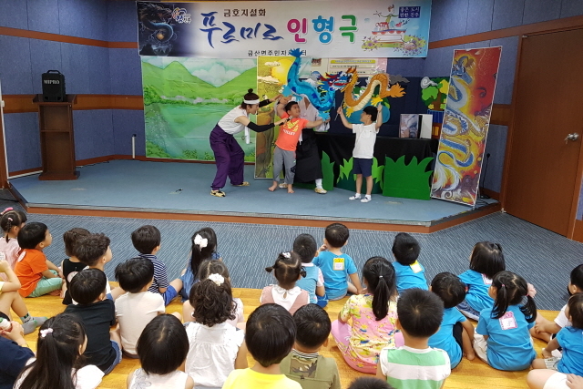 지난 6월 개최한 ‘제2회 금(琴) 달빛 소리축제’ 처음 선보인 푸르미르 창작동화 인형극은 1500명의 참여 주민들에게 뜨거운 호응을 얻어 관내 어린이와 청소년들을 대상으로 지속적으로 공연해 주었으면 하는 주민들의 열망에 의해 매달 한 번씩 공연하게 된다.