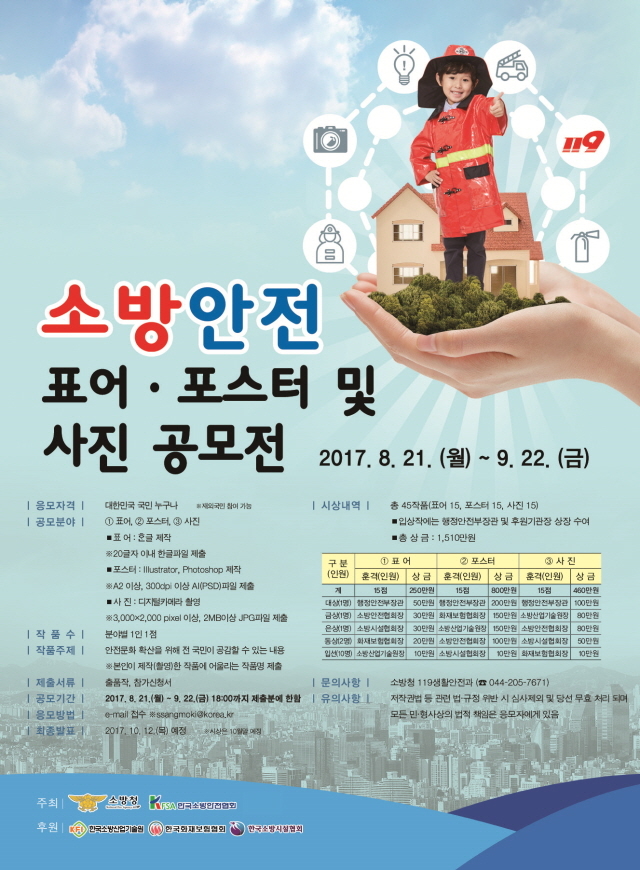 공모전에 대한 자세한 사항은 소방청 119생활안전과(044-205-7671)로 문의하면 된다.