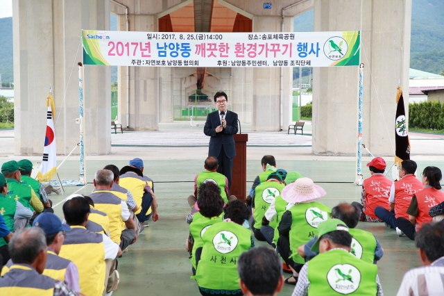 경남 사천시 남양동 자연보호협의회는 지난 25일 자연보호 회원을 포함한 동 조직원 130여명과 이 참여한 가운데 2017년 남양동 깨끗한 환경가꾸기 행사를 실시했다.