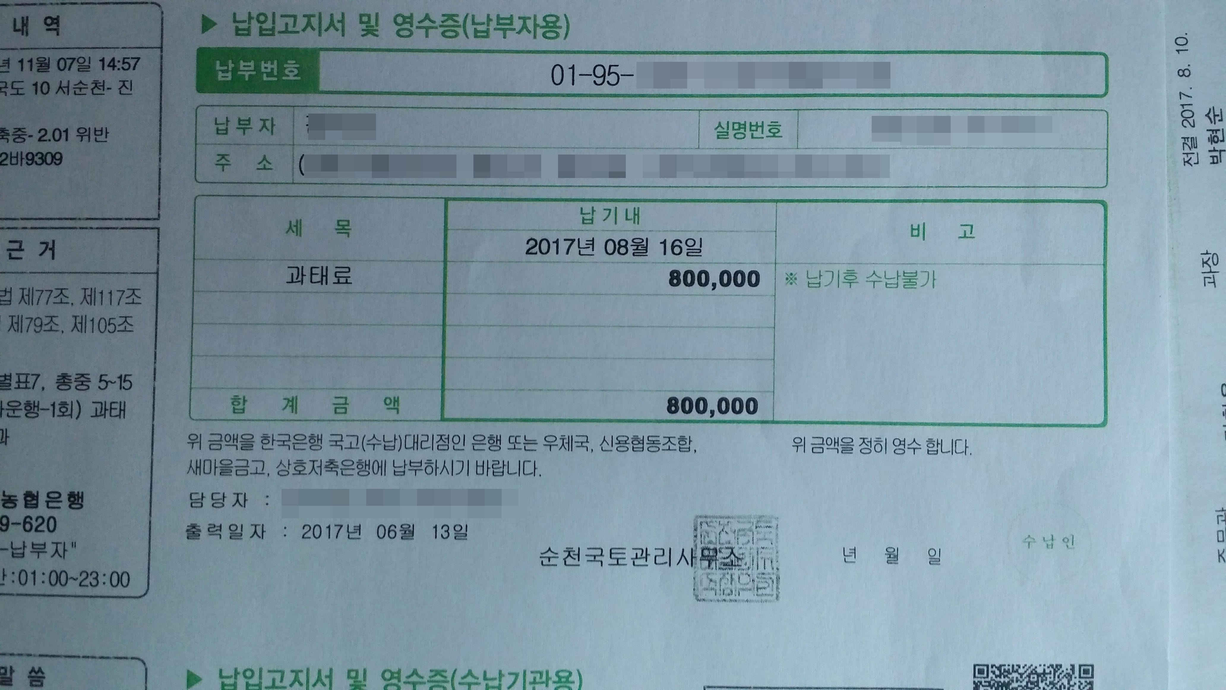 또 지난 6월 13일 발송한 과태료 납기일(8월 16일)이 지나지 않았음에도, 지난 8월 10일 광주지방법원 순천지원에 질서위반행위규제법으로 법원에 통보한 것으로 알려졌다.