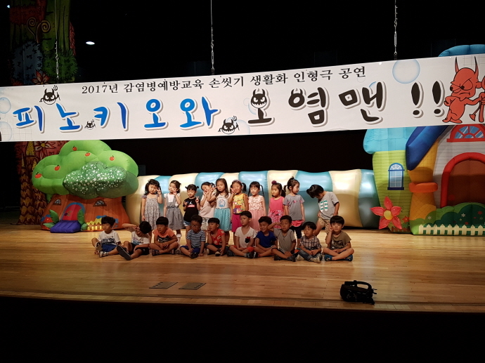 공연은 인형극단 ‘하늘’의 진행으로 마술공연, 뮤지컬식 복합 인형극을 통해 어린이들에게 손씻기에 대한 흥미를 유발시키고, 감염병 예방을 위해 손씻기를 365일 생활화해야 된다고 일깨워 주었다.