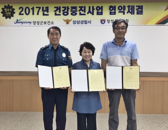 이번 협약은 장성군보건소 조미숙 소장과 경찰서를 대표해 최형보 경무과장과,장성군체육회 전계택 상임부회장이 참여했다.