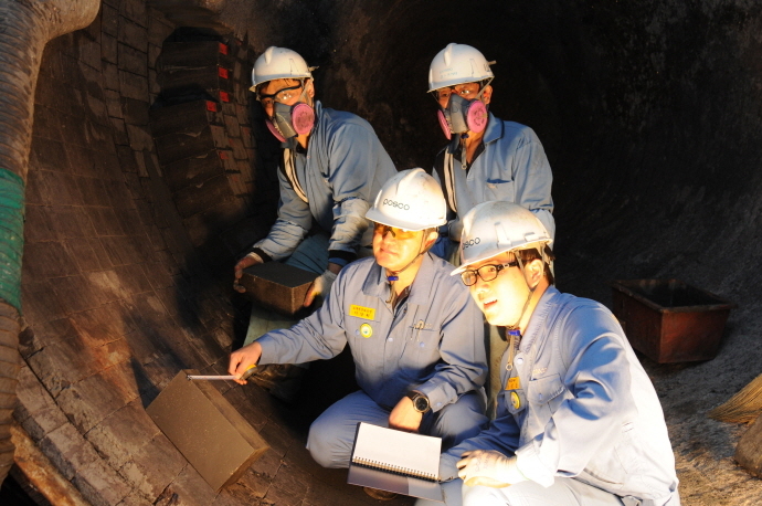 용선운반차는 약 1,500°C의 뜨거운 쇳물을 저장하고 운반하는 과정에서 내부 내화벽돌에 화학적, 물리적 침식이 발생함에 따라 제강부는 공급사 및 축조사와 협업해 내산화성을 개선한 내화벽돌을 개발했다. 뿐만 아니라, 용선운반차 점검 자동화 관리를 통해 전체 차량 107대를 적기에 수리 및 운행될 수 있도록 했다.