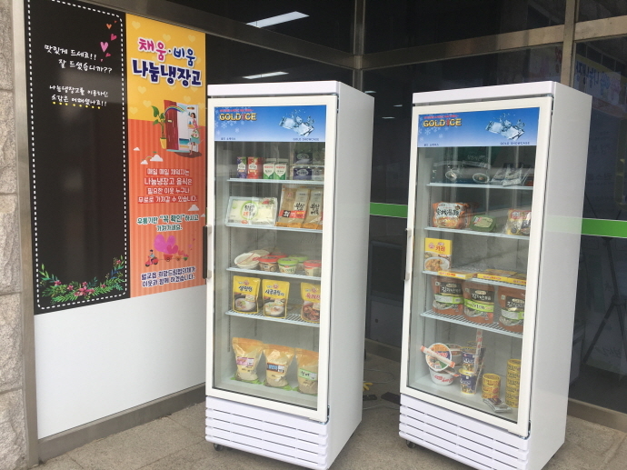 나눔냉장고는 주민들로부터 밑반찬, 빵, 라면, 캔 식품 등을 자발적으로 기부 받아 채우게 되며, 지역의 어려운 이웃이나 음식을 필요로 하는 주민 누구나 이용이 가능하다.