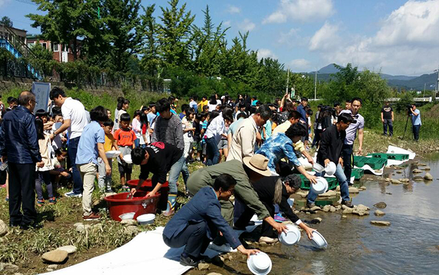 이날 행사는 지난 7월 뱀장어 5600여 마리를 방류한데 이어, 올해 두 번째로 실시되는 방류행사다.