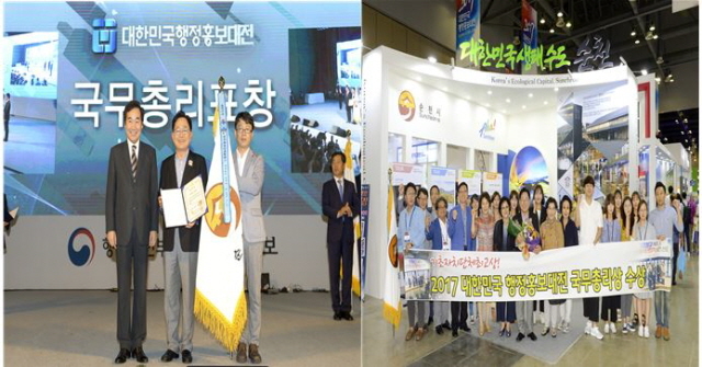 순천시가 31일 고양시 킨텍스에서 열린2017 대한민국 행정홍보대전 개막식에서 일자리 시책 추진 우수 지자체(기초 자치단체 1위)로 선정돼 국무총리 포상을 수상하고 순천만국가정원은 규제개혁 우수사례로 선정되는 영예를 안았다.