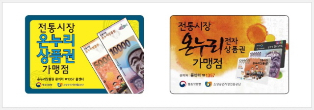 한편 온누리상품권은 가맹점 스티커가 부착돼 있는 전국 가맹점(전통시장 및 상점가)에서 사용할 수 있다.