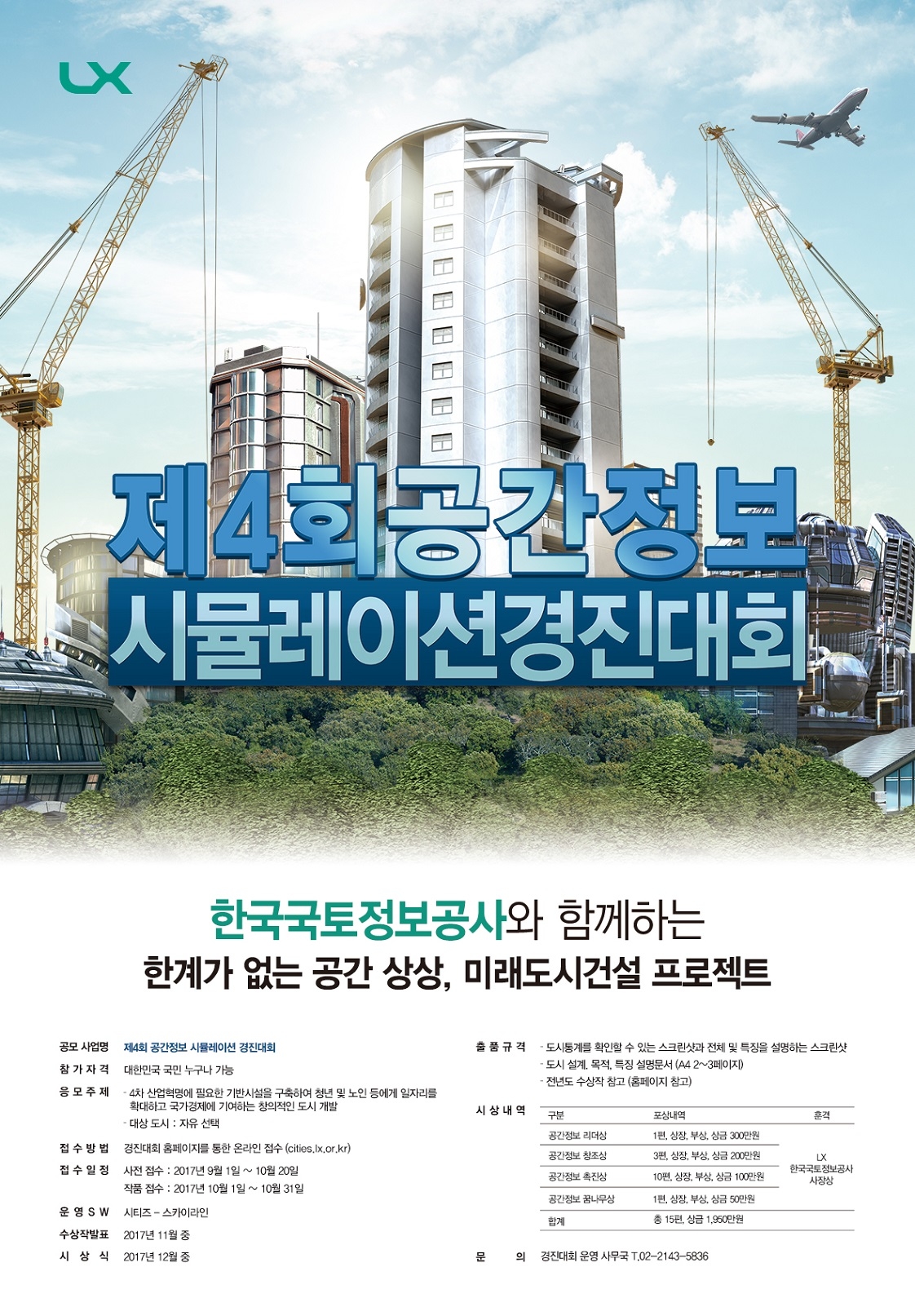 한국국토정보공사(LX)는 도시건설 소프트웨어를 활용한 시공간 통합시스템 모형 구축 경진대회인 '제4회 공간정보 시뮬레이션 경진대회'를 개최한다고 18일 밝혔다.