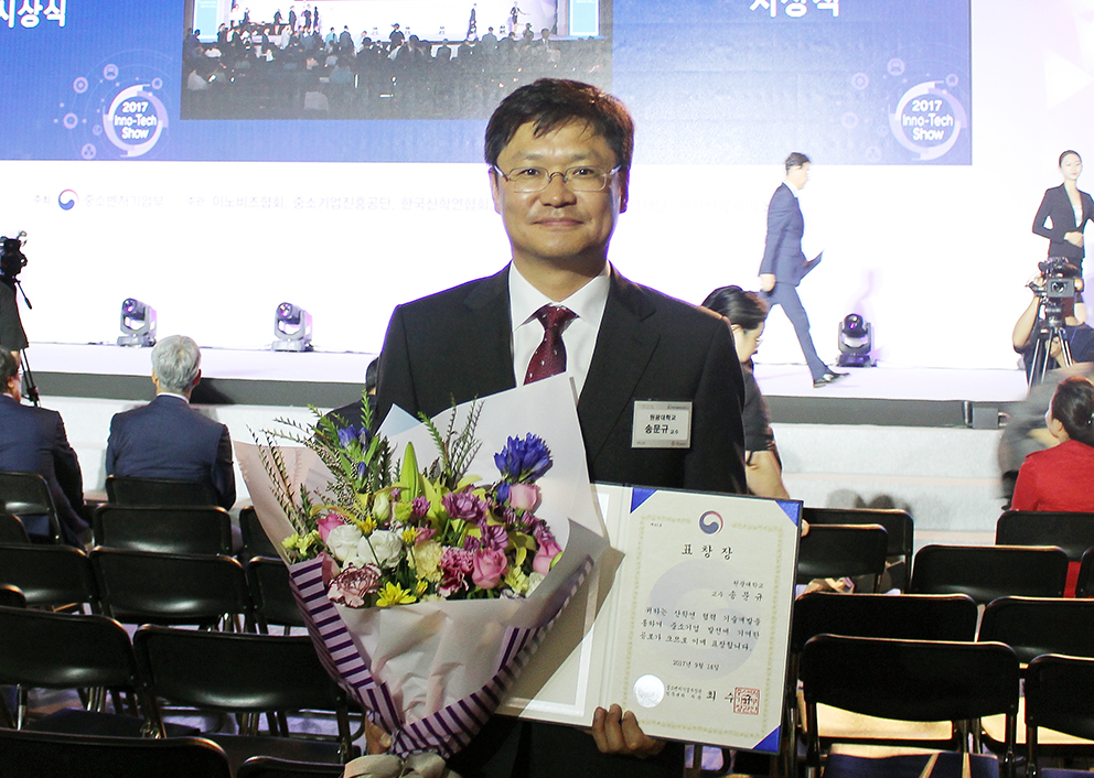 송문규(전자융합공학과 교수) 단장은 LINC+사업단 총괄책임자로서 다양한 산학협력 및 산학공동기술개발과제를 성공적으로 수행했을 뿐만 아니라, 활발한 연구 및 논문 저술을 통해 산학협력 확산에 기여한 공로를 인정받았다.