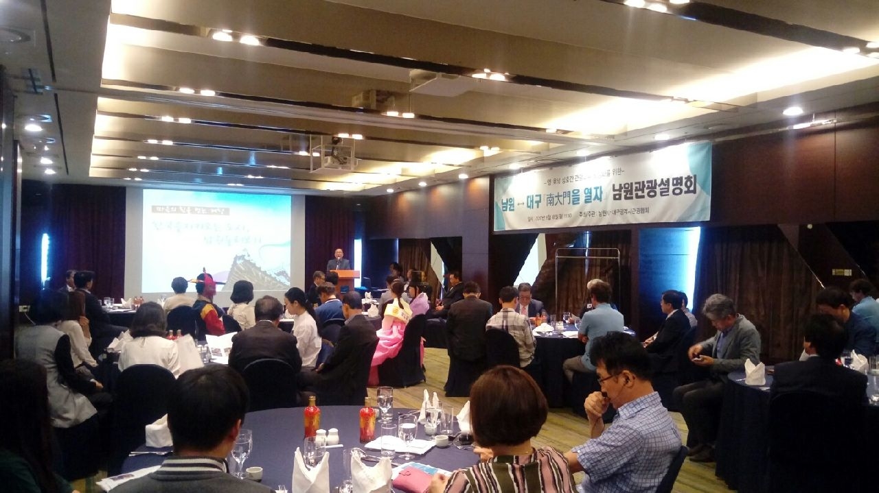 전북 남원시는 18일, 대구 노보텔 엠버서더 호텔에서 대구 관광업계 대표와 관계자 50여명을 초청, 영·호남의 새로운 관광채널 개척을 위한 관광설명회를 가졌다.