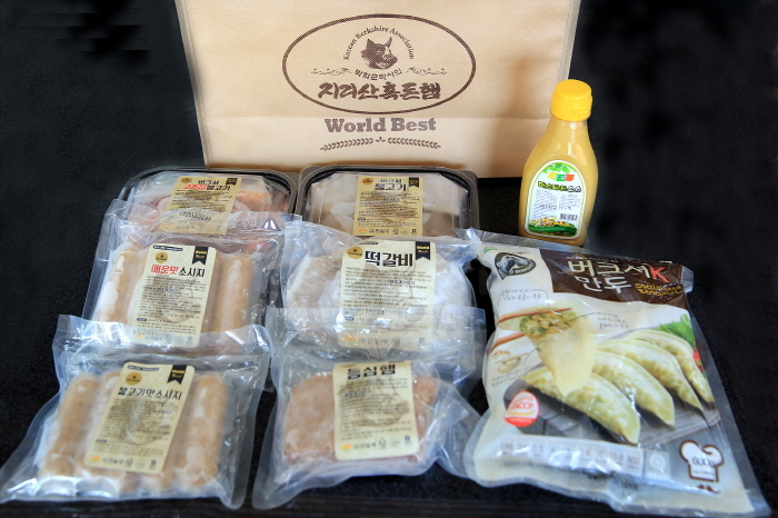 「지리산흑돈햄」은 청정 지리산 고랭지에서 기른 100%순종 버크셔 지리산흑돈을 원료육으로 사용한다. 육질이 부드럽고 특유의 맛이 살아있다. 지리산 흑돈은 양돈 신지식인 박화춘 대표가 자식을 키우는 마음으로 정성을 쏟아 쾌적한 환경에서 기른다. 지리산흑돈햄은 사람의 건강을 최우선으로 만든 저지방 웰빙햄이다. 특히 MSG, 보존재, 산화방지제, 전분이 없는 최고급 수제햄이다. 흑돈햄 1종 세트는 버크셔 만두(600g), 버크셔 불고기(500g), 버크셔 고추장불고기(500g), 등심햄(300g), 불고기맛소시지(300g), 매운맛소시지(300g), 떡갈비(300g), 머스타드 소스(230g) 8종으로 구성되어 있다. 가격은 5만원이다. 2종 세트는 1종 세트에서 등심햄을 뺏다. 가격은 4만3,000원이다. 배송료는 판매금액에 포함된다.