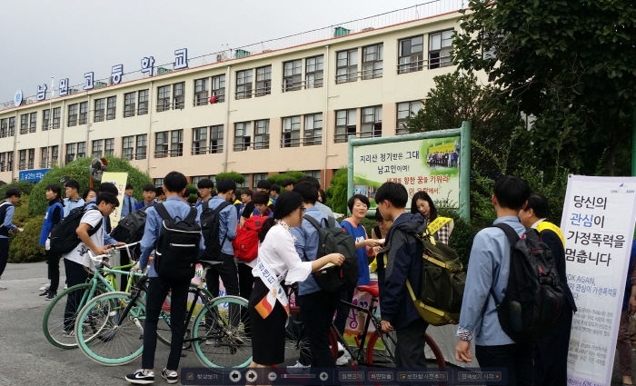 이날 실시된 캠페인엔 해당학교 학부모와 남원시, 경찰, 관련 상담센터 종사자 등 50여명이 함께 진행했으며, 다양한 여성폭력 인식과 관련한 OX판 스티커 붙이기, 홍보 리플릿과 홍보물품을 전달했다.
