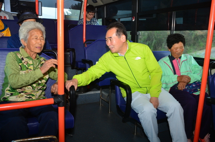 군에 따르면 특히 황숙주 군수는 이날 아침 6시부터 적성면, 풍산면 완행 버스에 올라 추석 장보기에 나선 군민들과 만남을 갖고 3번째 이어지는 군내버스 소통행보을 이어갔다.