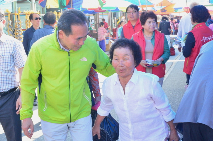 황 군수는 일찍부터 장사에 나선 상인들과 일일이 손을 잡으면서 전통시장 상인들의 애로점을 청취했다. 또 제수용품을 구입하면서 전통시장 활성화에 노력했다.