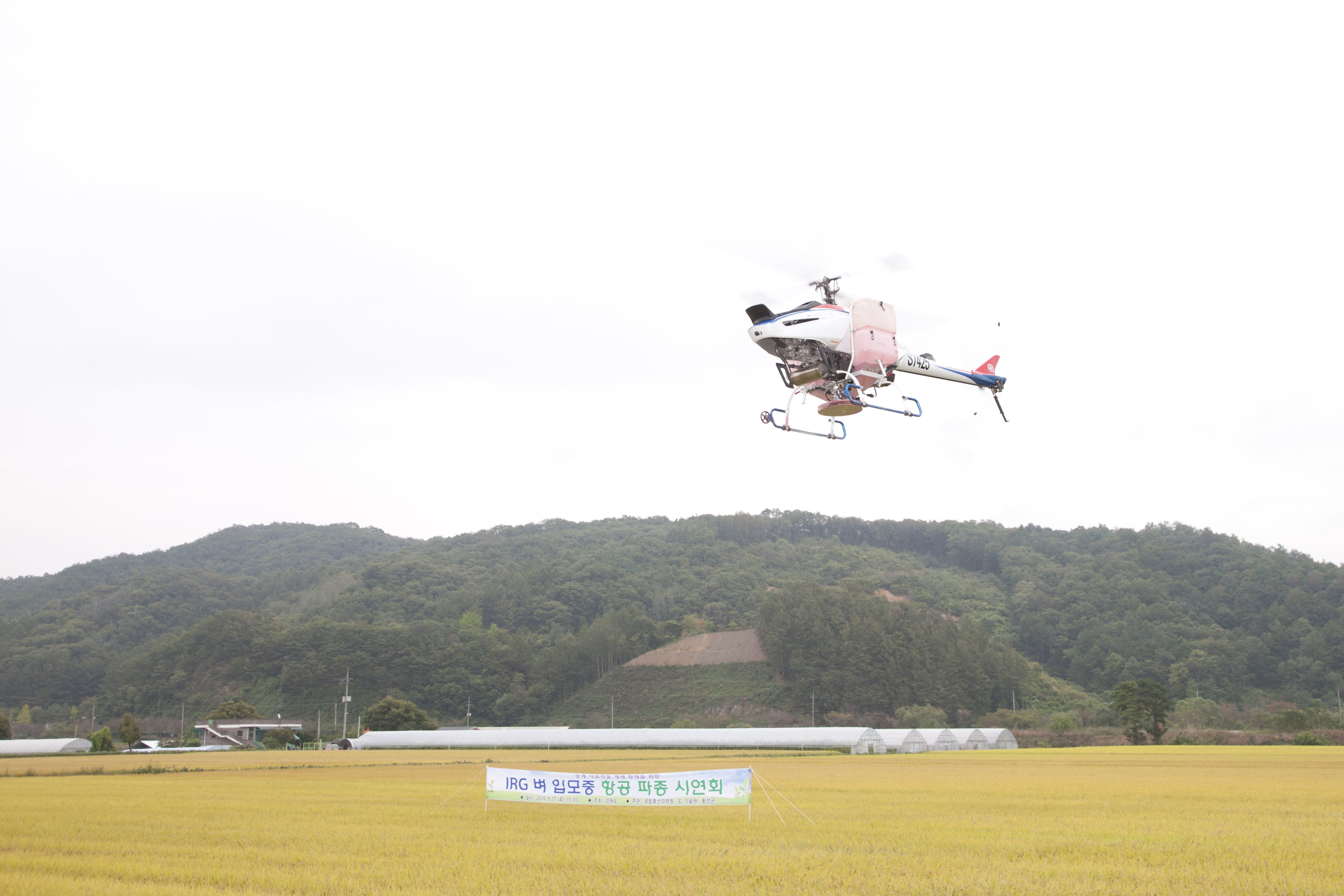 농촌진흥청은 이탈리안 라이그라스 등 겨울사료작물 적기 파종을 위해 26일 전남 고흥에서 무인헬기와 드론, 유인항공기(경비행기) 등을 활용한 겨울사료작물 파종 연시회를 열었다.