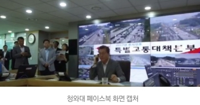문 대통령은 방 경정과의 교신에서 "귀성길은 분산되나 추석 당일은 성묘도 많고 귀경도 일찍하는 분들이 많아 역대 최대 교통량이 예상된다고 한다"며 "고생하는 대원 모두 안전하게 근무하길 바란다"고 당부했다.