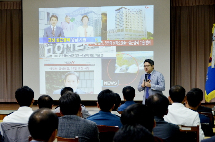 두 번 열리는 교양아카데미는 13일 오전엔 경찰서 3층 대강당에서 65명이 참석한 가운데 원광대학교 의과대학 이영훈 교수의 초청 강연을 들었다. 오는 16일 2차 강연도 같은 장소에서 직원들을 대상으로 열린다.