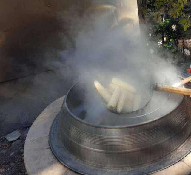 저물어 가는 오후 무렵. 굴뚝에서 연기가 풍풍 피어오른다. 나는 은행나무 숲으로 올라올 때 보지 못한 홍천옥수수를 가마솥단지에 장작을 때서 쪄내는 광경을 내려 올 때에 보았다. 어릴 적 어머니가 쪄 주던 그 풍경이 새록 솟는 그 광경을 목격하고는 너무 반가웠다.