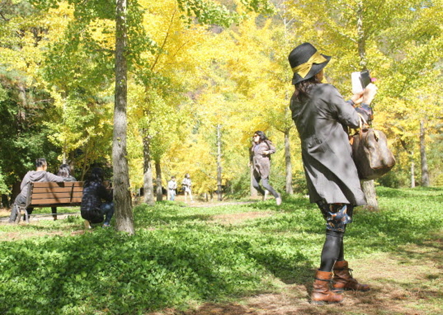 나는 카메라 가방을 메고 은행나무숲을 보기위해 온 사람들 틈에 끼여 은행나무 숲으로 들어갔다.