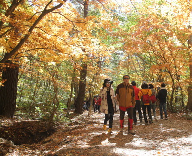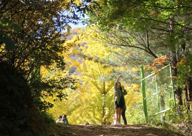 오랜만에 보는 맑고 푸른 하늘. 구불구불 산길로 올라가길 1시간여가 지나자, 하늘마저 물들일 기세로 뻗은 은행나무 숲이 눈에 들어왔다.