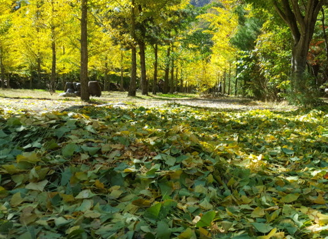꽤 넓은 산자락에 계곡을 끼고 은행나무들이 빼곡하다. 여기저기 은행나무 아래에서 폰카를 찍는 가족과 젊은 연인들의 행복한 얼굴이 은행나무잎을 닮았다.