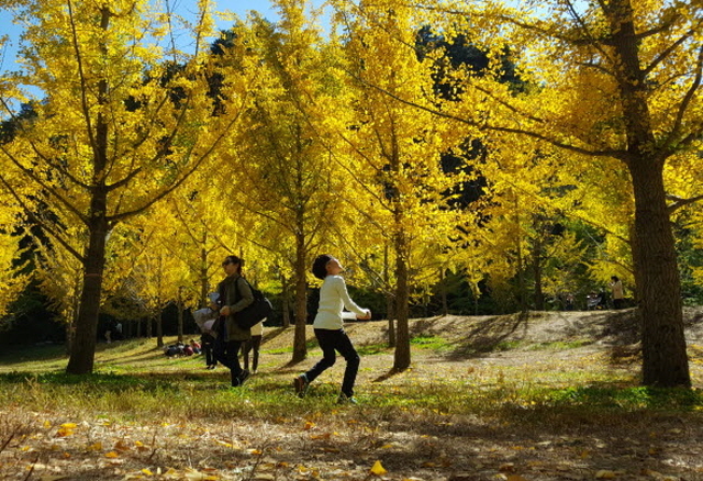 노란색깔로 변신하는 은행나무를 보며 이 많은 사람들은 은행나무의 강인한 생명력을 배울 것이다.