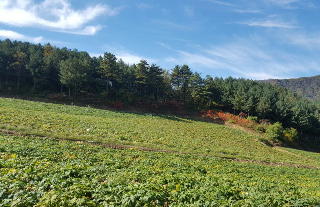내가 자동차를 멈춘 곳은 해발 750m의 고랭지 마을인 강원도 홍천군 내면 광원리 은행나무숲이 있는 마을이다.