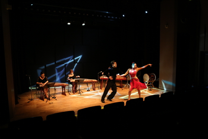 국악기와 춤의 만남. 일반적으로 국악기 반주에 한국무용을 자주 볼 수 있지만 라틴댄스에 맞춰 선보이는 경우는 보기 드물다.