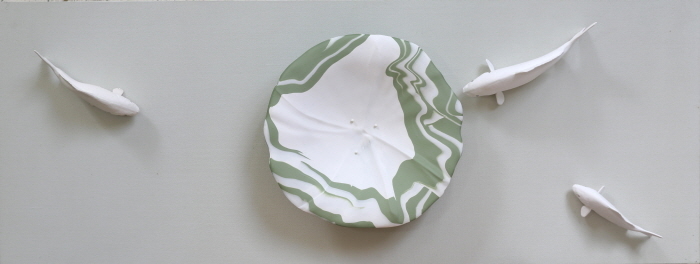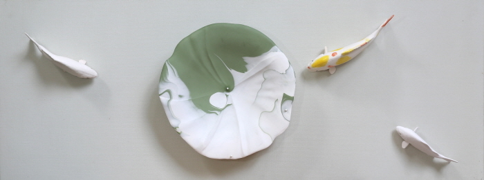 특히 봄에 소생하는 생명의 근원을 살리기 위해 두세가지 색을 연잎 표면에 흘러보내 봄에 역동감을 만들어냈다.